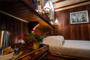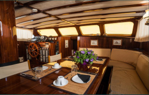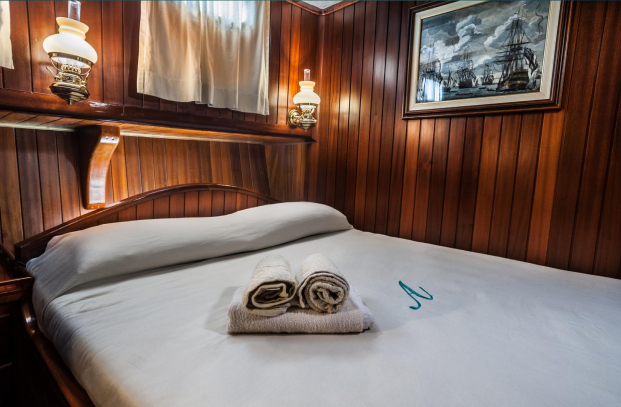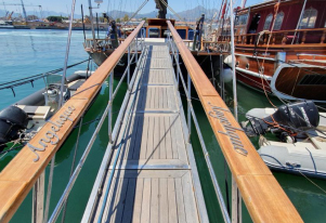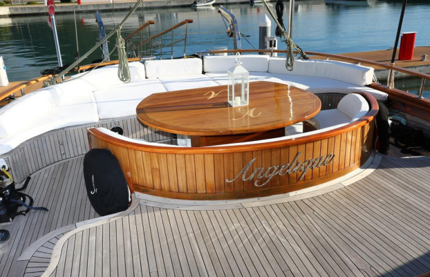 Our Angelique is a Gulet built in 2007, of superior category (Extra luxury) 24 meters long and 7.40 wide, with 4 guest cabins for 8 people, with all the comforts. A Gulet holiday, a new way to experience the places and the beauty of moving freely, spending your time in a luxury environment suited to your needs., 4 showers, 4 bathrooms and a crew of 3 at your disposal. The living room consists of a lounge area with television, sofas and spaces for lunch and dinner. There are: bar, oven, fires, 2 refrigerators, DVDs, reading and music area, satellite TV, Wi-Fi. On-board
